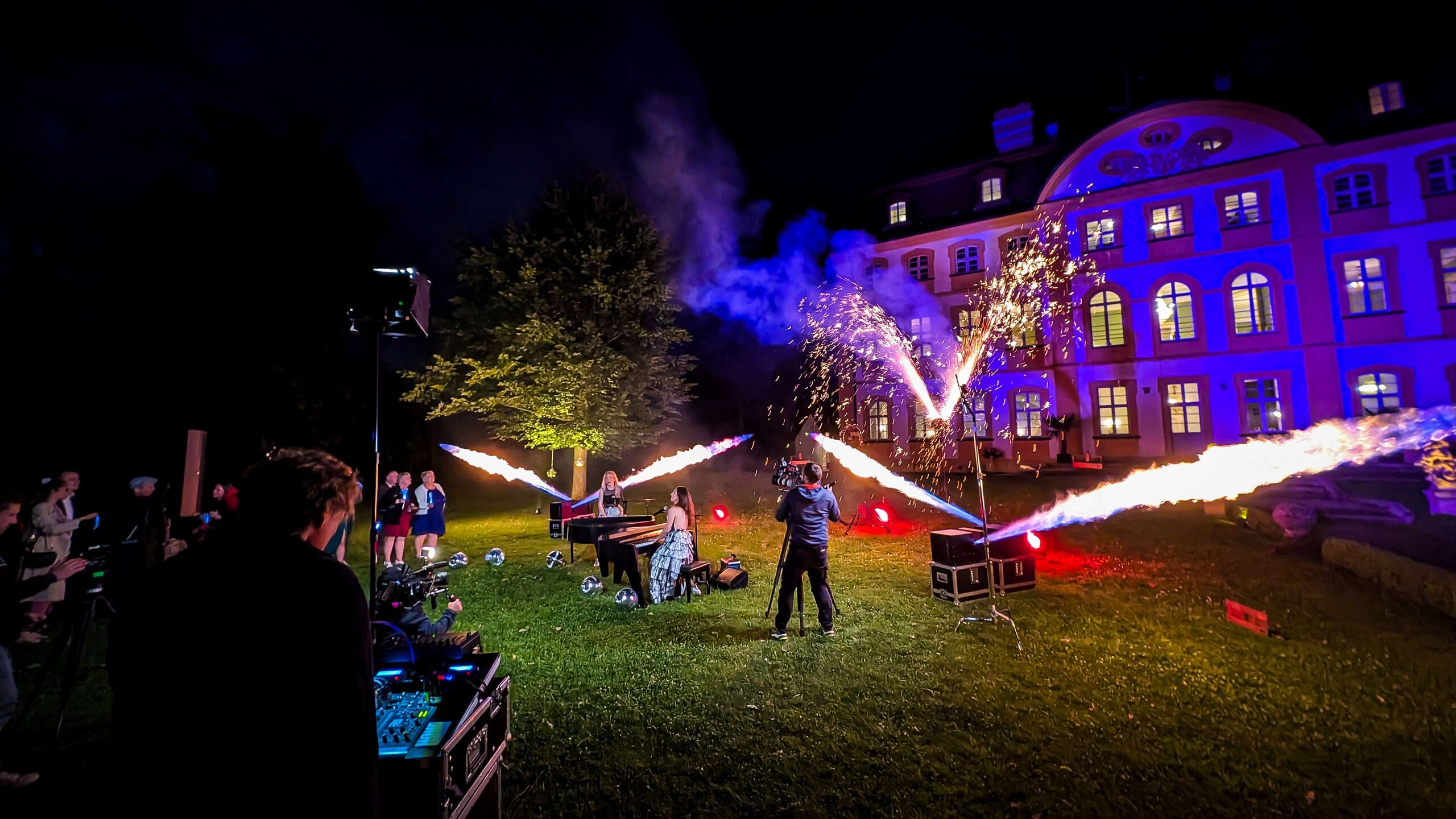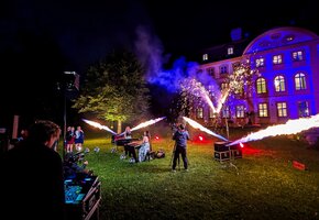 Auch dieses Jahr führte uns die Reise nach Bayern und Sachsen-Anhalt: Auf Schloss Atzelsberg bei Erlangen und Schloss Jägersburg nahe Forchheim fanden drei der Hochzeiten statt, die wir begleiten durften. Jeweils zum Abschluss des Abends gab es einen musikalischen Live Act, den wir mit Pyrotechnik begleiten durften. Für Ross Antony, Jay Kahn und das Klavierduo Queenz of Piano wurde je eine zum Titel passende Show gestaltet.