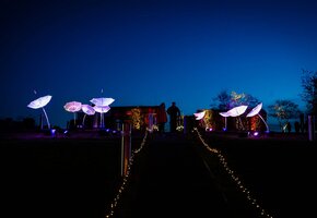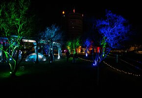 Ohne Eintrittsgebühren konnten die Besucher in den Abendstunden nach dem Einkauf noch bei einem warmen Getränk durch die Parkanlage schlendern und zahlreiche Lichtinstallationen entdecken. Neben Regenschirm-Blumen, einem Lichterlabyrinth und einem funkelden Spiegelsaal, luden eine Schattenspiel Wand und ein Selfie-Rahmen für Erinnerungsfotos zu Interaktion ein.