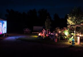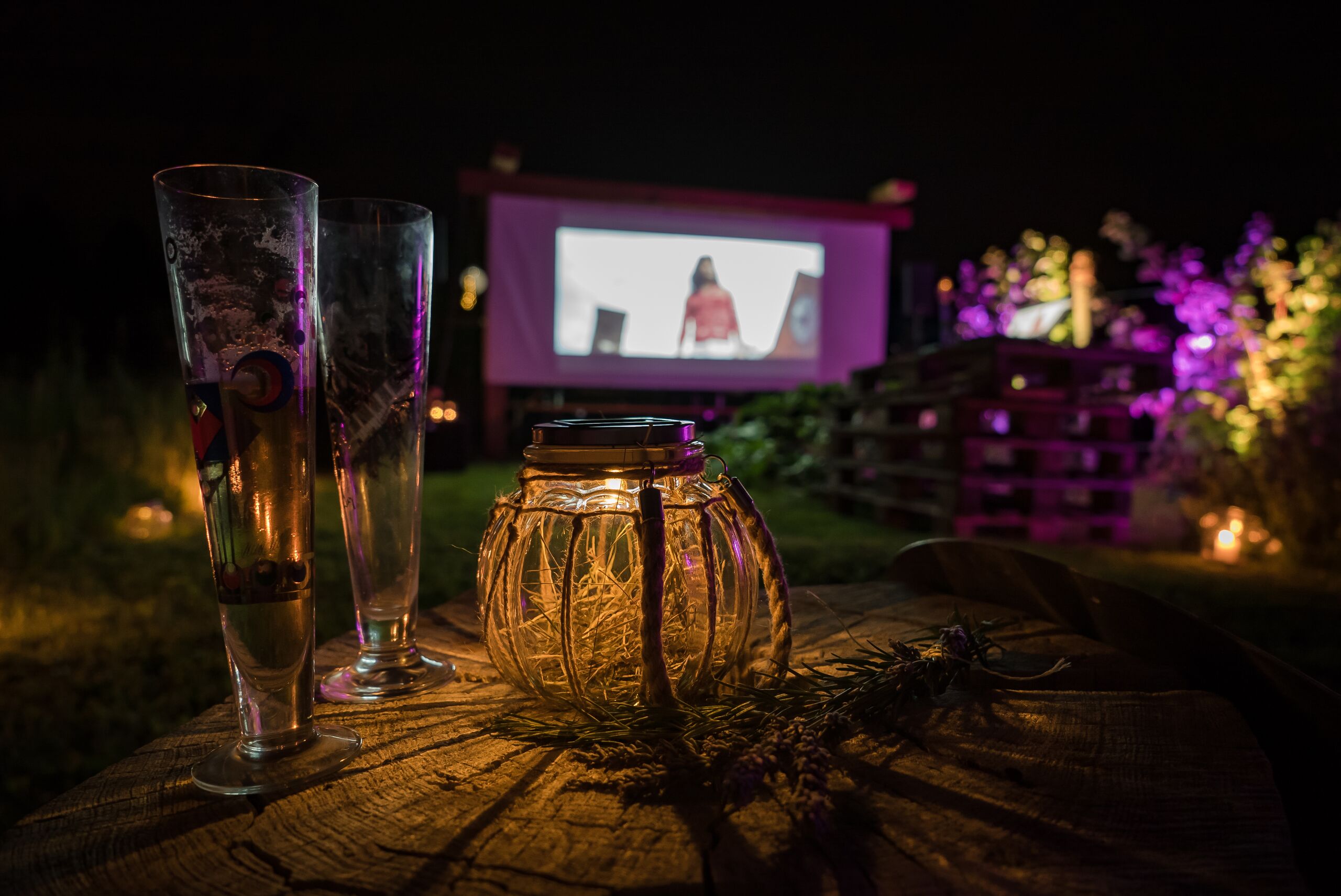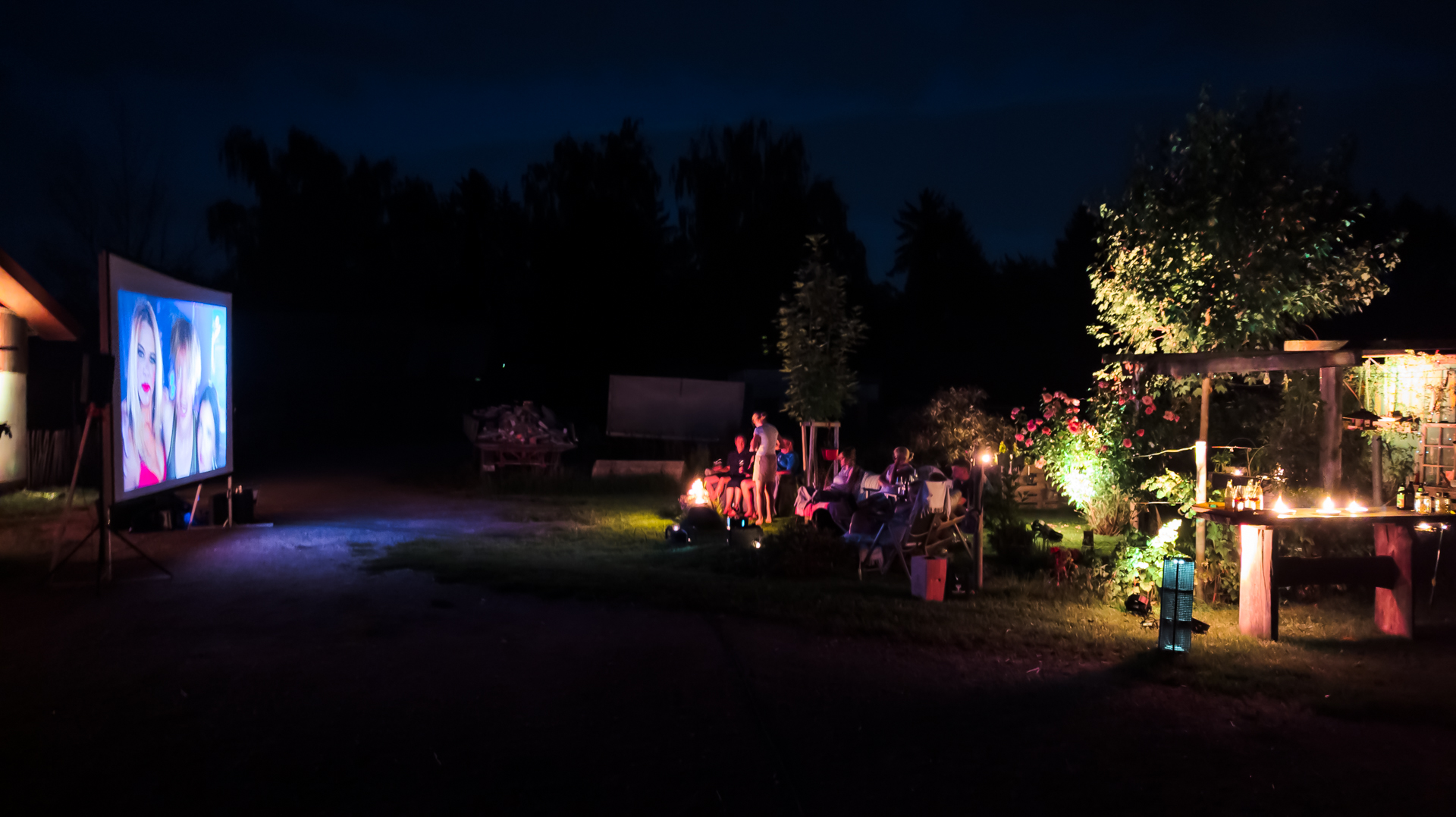 Seit einigen Jahren nutzen wir ein eventfreies Wochenende im Sommer für ein kleines, aber feines Sommerkino im Freundeskreis. Aus einer Geburtstagsüberraschung entstanden hat sich diese Tradition etabliert und ist jedes Mal ein tolles Erlebnis. Ganz ungezwungen startet der Abend mit einem hervorragenden Essen und passender Getränkeauswahl. Mit Einbruch der Dunkelheit beginnt die Kinovorstellung in stimmungsvollem Ambiente und klingt nach der Filmvorstellung in gemütlicher Loungeatmosphäre aus.