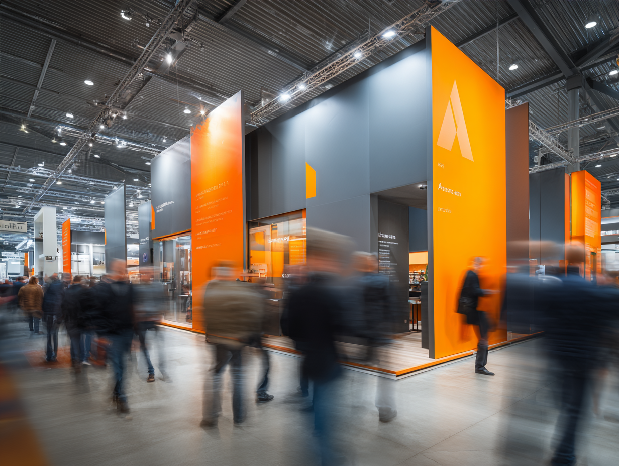 Einladende Großbanner für innen und außen, Stellwände, LED-Bildschirme und Vitrinen für Ihre Produktauslage, zugegeben Messebau ist nicht unsere Kernkompetenz, aber soweit von der Veranstaltungstechnik ist er nicht, und somit auch von uns problemlos abzuwickeln.